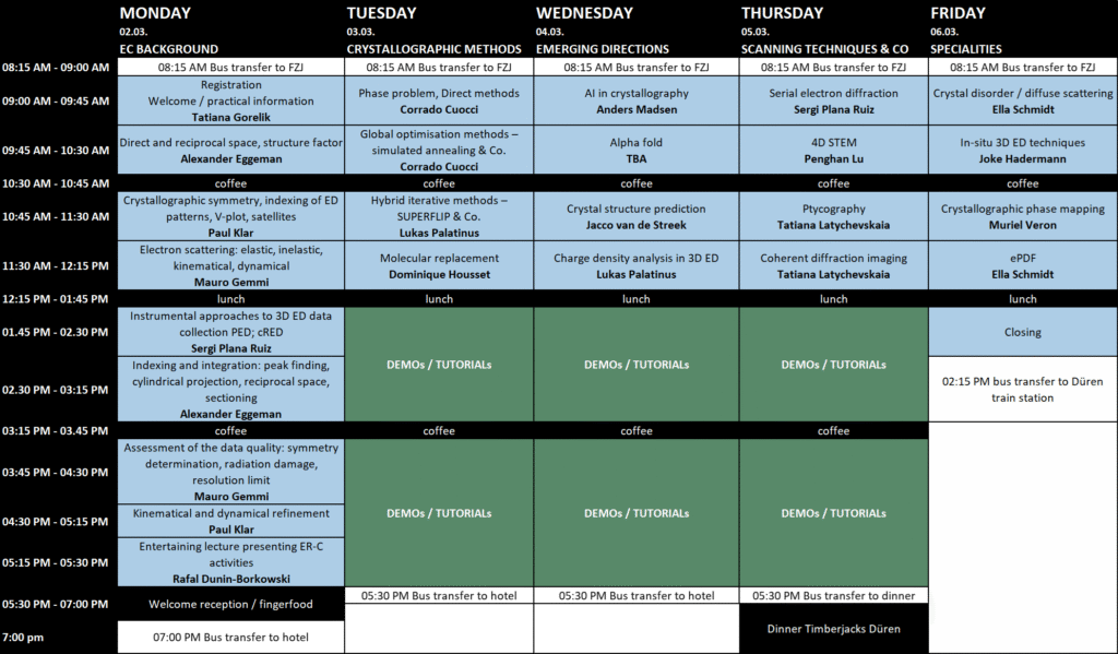 Coffee breaks will be served in building 05.13 outside the seminar room where the school is being held. During lunch breaks we will walk from the ER-C building to the cafeteria (ca. 10 minutes) together and will take you along the picturesque winter lake. Be sure to bring a warm jacket to fully enjoy the beauty of the German winter. The cafeteria offers a wide variety of dishes, so you should be able to find something to suit your taste. We will provide lunch tickets which you need to presented at the cash register. A separate room will be reserved at the cafeteria so that we can all sit together. Additionally, coffee and beverages will be provided there.