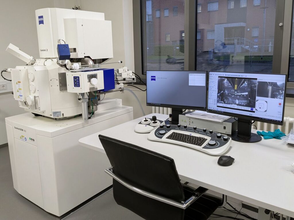The Zeiss Gemini SEM 460 provides a versatile sample environment supporting both conventional high-vacuum operation and environmental imaging. The environmental NanoVP mode allows operation at chamber pressures of up to 500 Pa, enabling the investigation of non-conductive or beam-sensitive samples while reducing charging effects.